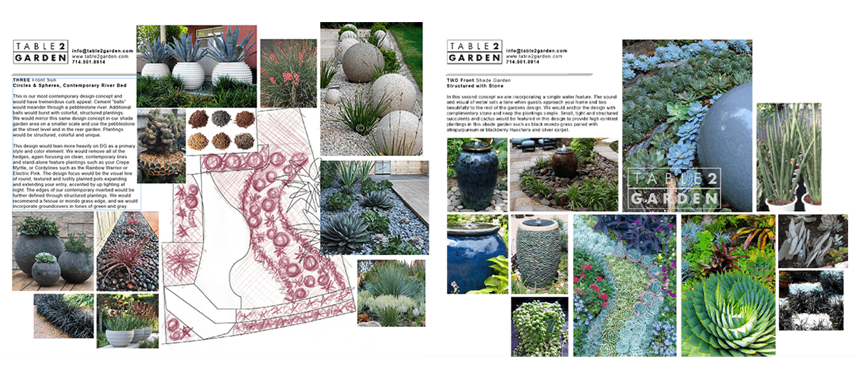 The concept sketches and inspiration boards are the first step in Table2Gardens creative process. It is this innovative approach to landscape design that results in client centered garden designs that reflect and celebrate our clients unique style.